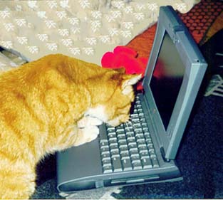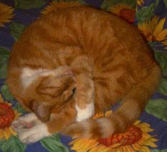 I do have an email address and will answer your message when I wake up from my nap. (Sleeping in the sun in the computer room is my favorite indoor activity.) You can also visit the web page of my person, who is starting to have white stripes in her fur, just like me. | ![]() |