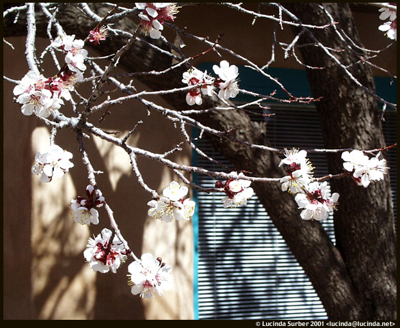 Apricot TreeThe apricot tree is in full bloom and spring is in the air except when the wind is howling. |