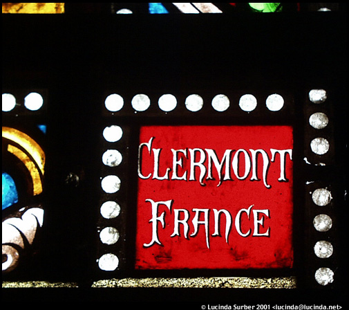 WindowThe lateral nave stained glass windows in the Santa Fe Cathedral of St. Francis of Assisi were made in Clermont-Ferrand, France and installed in 1884. My favorite part is this signature block. |
