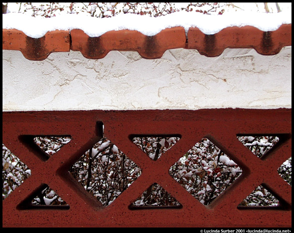 Coyote Fence and WallMore fresh snow on coyote fence and wall—all grey, brown and white. |