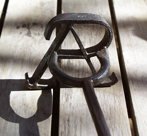 There were few fences in early California. Cattle were allowed to roam free and graze wherever they could find food. Twice a year the cattle were rounded up and branded. The brands usually featured the initials of the owner or the ranch. In the Peralta brand you can see the P from Peralta and the A from Rancho San Antonio. Heated in an open fire, the brand burned away the hair of the cattle, leaving a scar that stood for a certain rancho (ranch). The long handle on the branding iron protected the vaquero (cowboy) from the heat of the iron and the smell of the burning hair. |