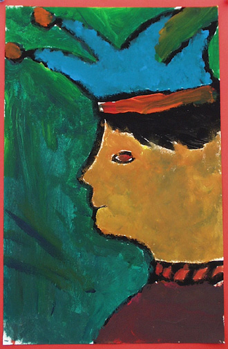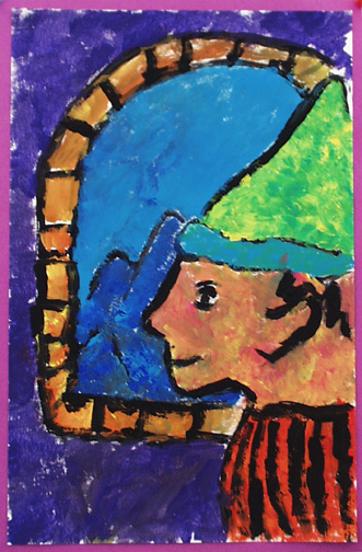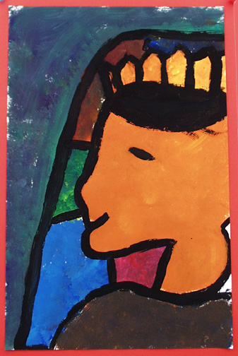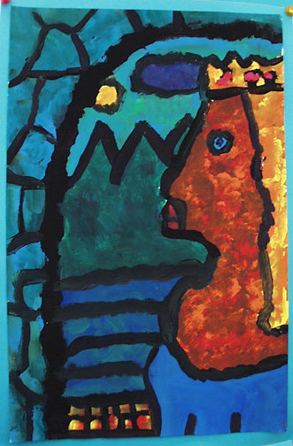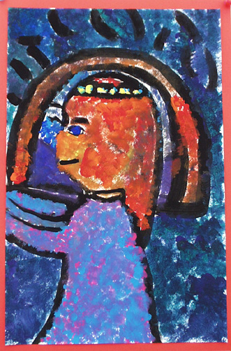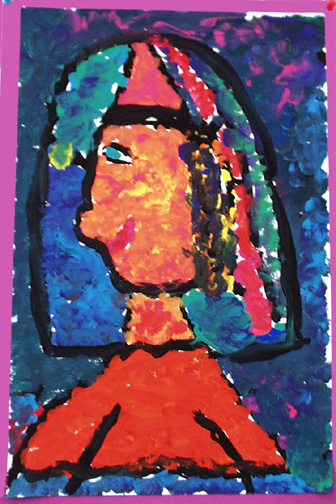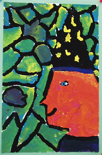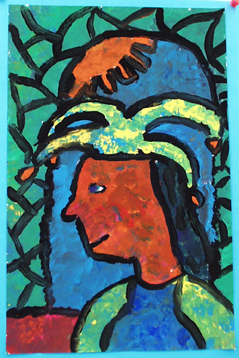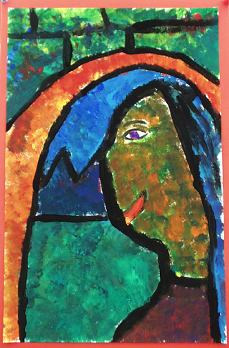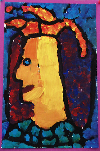 We painted self portraits in the style of Georges Rouault, who was a stained glass artist before becoming a painter.