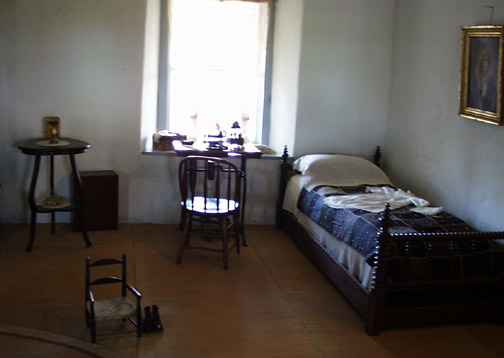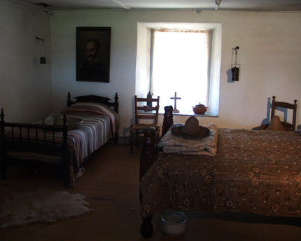 This bedroom in the Castro-Breen Adobe house has a portrait of General Castro on the wall. |