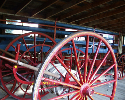 The upstairs office with two spittoons and a large press. |
