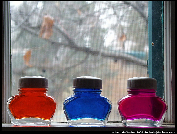 Inks Watching the SnowSnug on the kitchen window sill, these ink bottles admire the snow falling on the patio. |
