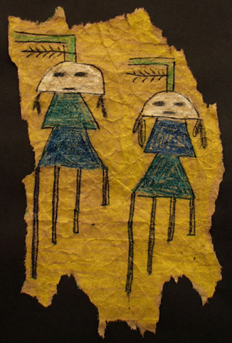 Native American Symbols: After studying Native Americans we created works featuring symbols like the thunderbird, the rattlesnake, the bird, the sun, the kachina, the cloud people, and another sun.