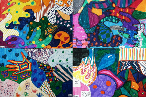 ArtCreatures: Three students worked together to make different sections of imaginary creatures. Here are two examples and two more.