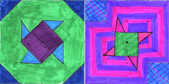 Mathematical Thinking in 4th Grade: We finished our second math unit by creating symmetrical designs. We began by reviewing Mirror Symmetry. Then we created designs that had both Mirror and Rotational Symmetry. The hardest was creating designs that had Rotational Symmetry but NOT Mirror Symmetry (two more examples and two more).
