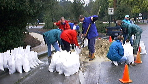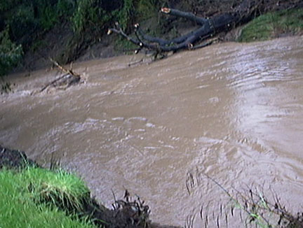 Why I Didn’t Go to Work Tuesday (2/3/98) Tuesday morning we found a line of mud on our sidewalk and debris all over the street. (Luckily my digital camera had arrived on Friday!) Monday night San Francisquito Creek, which divides Palo Alto and Menlo Park, flooded its banks and the streets in our neighborhood. Some parts of the creek bank collapsed, and tree parts collect in piles. Our flower beds looked more like ponds than earth. Luckily our house was not flooded, but we could not drive very far away from home. Many of our neighbors had to make sandbags to protect their houses. 101 South was closed; cars were drifting in the middle of the freeway. University Avenue was completely deserted except for items deposited by the flood. And Hoover School was closed for the first time since the Loma Prieta Earthquake of 1989! |
