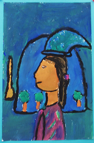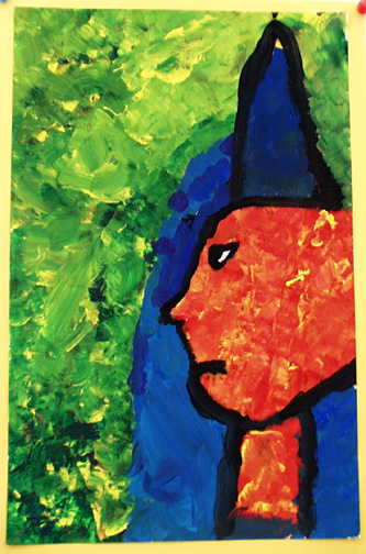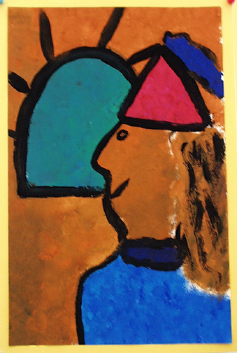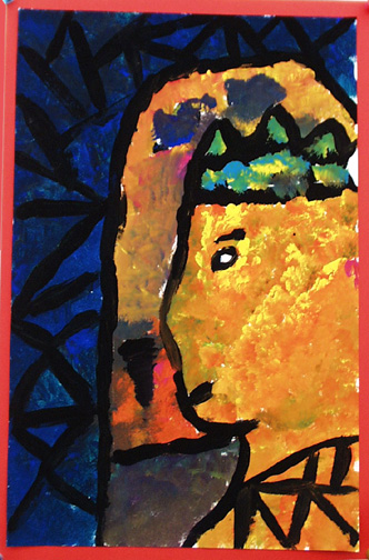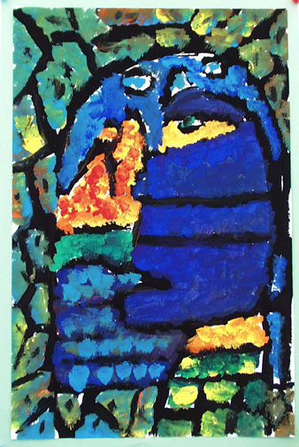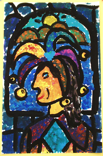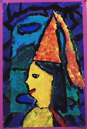 We painted self portraits in the style of Georges Rouault, who was a stained glass artist before becoming a painter.